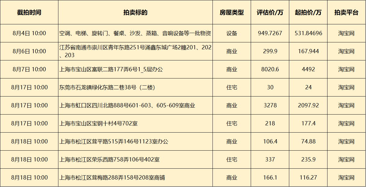 司法拍卖|8月拍卖预告